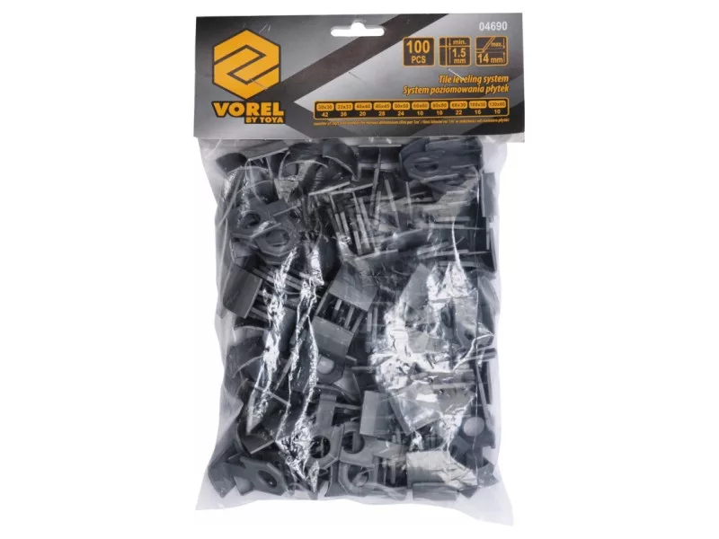 Clips for tile leveling system, which very quickly and easily helps to lay tiles perfectly saving time and eliminating surface inaccuracies.
