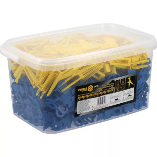 A tile levelling system that makes laying tiles quick and easy. The kit consists of 700 pieces of breakaway clips, 200 pieces of reusable wedges and pliers to make assembly easier and quicker. The system helps to eliminate surface irregularities. It is designed for ceramic, porcelain stoneware, rectified floor and wall tiles of various sizes and thicknesses in the range 7-14 mm. The system replaces traditional crosses. Prevents displacement during installation and adhesive setting, speeds up tiling with perfect joints and levelness. No additional tools are required. It can be applied to walls and floors and is easy to install for all skill levels.