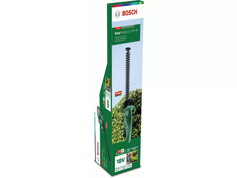 Der EasyHedgeCut 18-45 wurde für die mühelose Pflege kleiner und mittlerer Hecken konzipiert. Die leichte und leistungsstarke Akku-Heckenschere bietet beeindruckende Schneidleistung ohne Blockieren - dank des Bosch Blockiersystems-