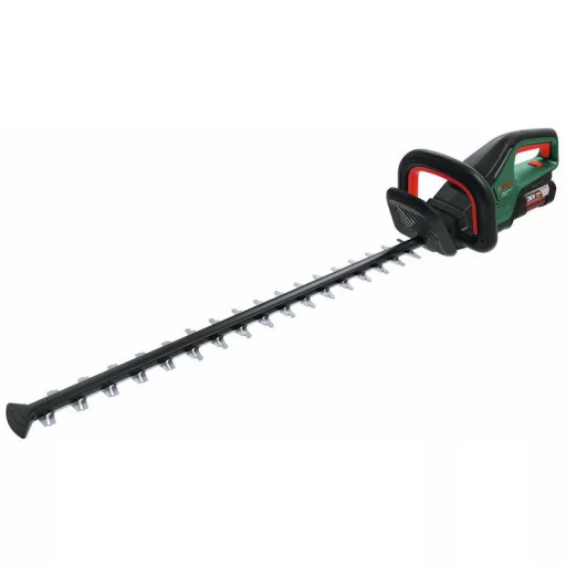 Die akkubetriebene AdvancedHedgeCut 36V-65-28 meistert mühelos dichte Hecken und Büsche. Der bürstenlose Motor kombiniert hohe Leistung mit maximaler Effizienz, weniger Motorwärme führt zu einer längeren Lebensdauer. Da es einfach zu handhaben ist, belastet dieses Werkzeug den Rücken, die Schultern und die Handgelenke des Gärtners weniger. Die Schweizer Klingen sorgen für präzises Schneiden, während das patentierte Anti-Blockier-System von Bosch dabei hilft, Blockaden zu vermeiden, was zu kontinuierlichem Trimmen und weniger Ausfallzeiten führt. Diese vielseitige Heckenschere eignet sich für alle Arten von Hecken, ob Weißdorn, Berberitze oder Schlehdorn, und kann Äste bis zu 28 mm dick schneiden. Dieses Werkzeug ist Teil des 36V POWER FOR ALL ALLIANCE Systems. Ein einziger Akku für alle 36V POWER FOR ALL Werkzeuge.