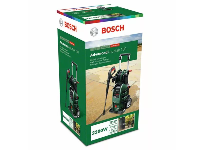 Der AdvancedAquatak 150 bietet dank Quad-Pumpentechnologie eine starke Reinigungsleistung. Die vielseitigen Düsen erfüllen selbst die anspruchsvollsten Reinigungsaufgaben, von großen Fahrzeugen über Auffahrten bis hin zu Booten. Einfacher Aufbau dank Hochdruck-Schlauchtrommel.