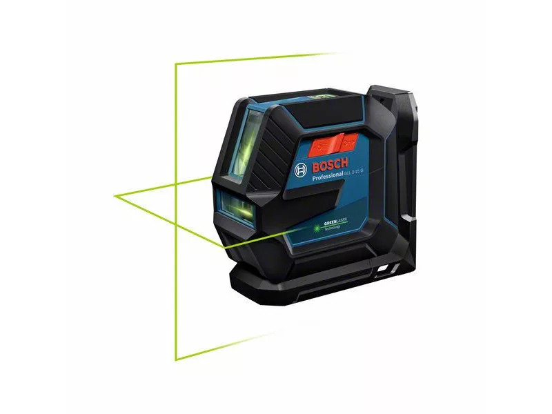 Mit dem einsatzbereiten GLL 2-15 G Professional Linienlaser sind präzise Ergebnisse garantiert. Die robuste Konstruktion erleichtert die Konzentration auf die Aufgabe. Die versenkten Gläser bieten besseren Schutz durch das gummierte Gehäuse, während der Schutz vor Staub und Spritzwasser durch die IP 64 Schutzklasse gewährleistet ist. Der EIN/AUS-Schalter und die Ein-Knopf-Tastatur erleichtern die Bedienung. In heller Umgebung sind die vertikalen und horizontalen grünen Laserlinien besser sichtbar.