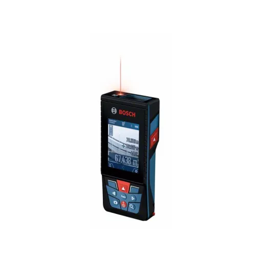 Robuster Outdoor-Laser-Entfernungsmesser mit digitaler Kamera-Sucher, Vergrößerungsfunktion für präzise Messungen von Entfernungen bis zu 150 m. Die Maße und Bilder werden automatisch gespeichert und können einfach auf dem großen, kontrastreichen 2,8"-IPS-Display betrachtet werden, das sowohl im Hoch- als auch im Querformat verfügbar ist. Für eine bequeme Dokumentation können alle Daten per Bluetooth an die Bosch MeasureOn App oder per USB-Gerät an einen Computer übertragen werden. Mit IP54-Schutz und kratzfestem Glasdisplay, benutzerfreundliche Bedienoberfläche - dieser Laser-Entfernungsmesser ist ein praktisches und vielseitiges Werkzeug für problematische Arbeitsbereiche.
