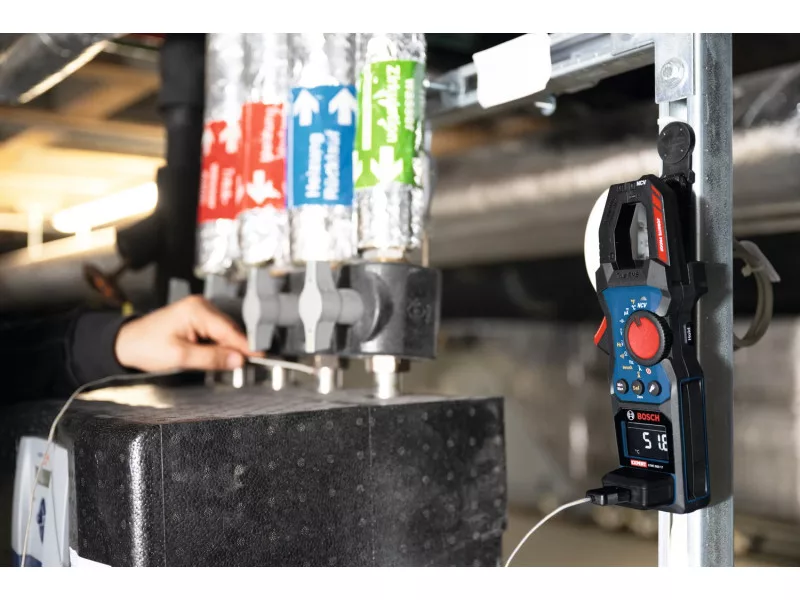 Das EXPERT Zangenamperemeter misst Wechsel- und Gleichstrom bis 600 A und Spannung bis 600 V Wechsel-/Gleichstrom. Es ist kompatibel mit dem BA 3,7V 1,0 Ah A Professional Li-Ionen-Akkupaket; der MH 1 Professional Magnet-Halterung, dem MS 90 Professional Messleiter und dem K-Typ Professional Temperatursonde.