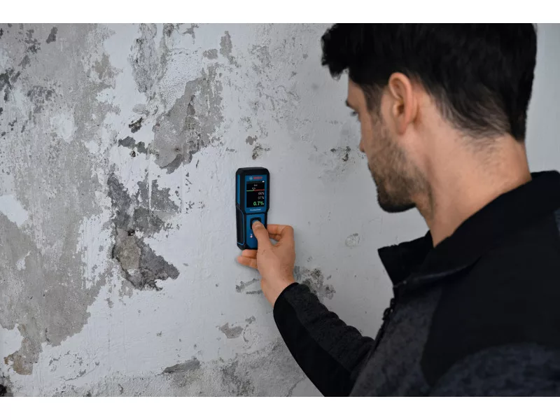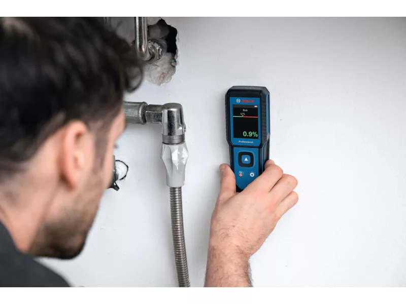 A Professional GMM 1-15 mérőhegy nélküli nedvességmérő elengedhetetlen a gipszkartonozók, festők, létesítménykezelők, építészek, vízvezeték-szerelők és ácsok számára. Hatékonyan azonosítja a nedvességforrásokat, ellenőrzi a felületi állapotokat és leolvassa a nedvességszintet. Legyen szó gipszkarton ellenőrzéséről, egyenletes festési felület biztosításáról vagy a fa nedvességtartalmának ellenőrzéséről, a GMM 1-15 Professional segít a pontos értékelések elvégzésében. A Li-ion akkumulátorral való kompatibilitás biztosítja a megszakítás nélküli működést, lehetővé téve, hogy az adott feladatra összpontosíts.