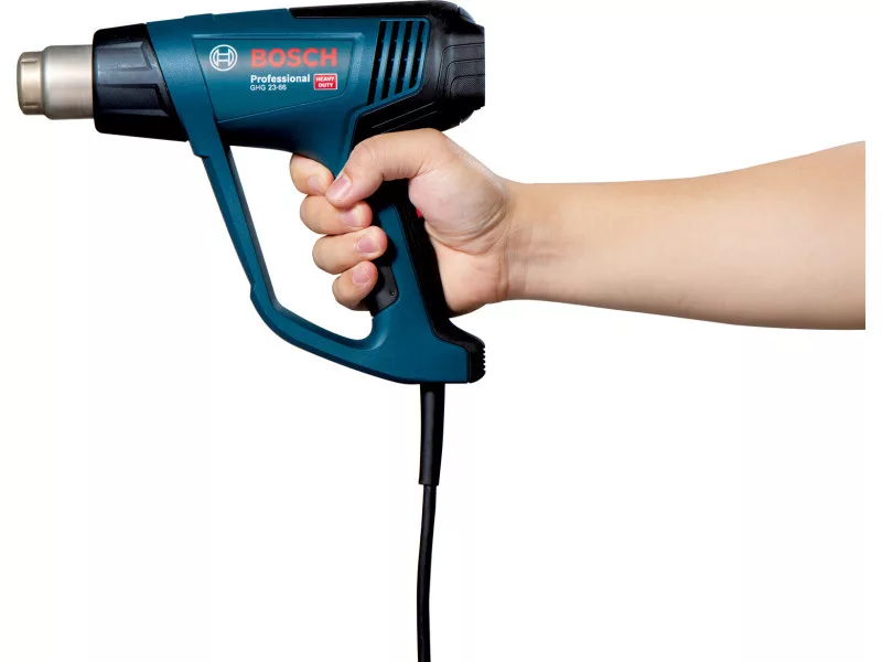Das GHG 23-66 Professional Heißluftgebläse mit umfassender Temperatur- und Luftstromregulierung. 10 Luftstromstufen, digitale Temperatursteuerung in 10 °C-Schritten und 4 individuell anpassbare, speicherbare Programme. Diese Funktionen lassen sich leicht über das Display einstellen. Das Werkzeug erreicht leicht Temperaturen von bis zu 650 °C. Zur Verlängerung der Lebensdauer des Werkzeugs schaltet die automatische Hitzeschutzfunktion die Heizeinheit ab, während der Ventilator weiterläuft. Es verfügt über eine praktische Kühlstufe und eine stabile Kühlposition.