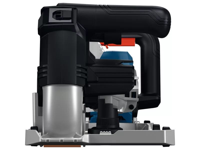 • A vágás kényelmes vezetése a munkadarabon a talplemez görgőinek és a vágási helyzetet jelző jelöléseknek köszönhetően
