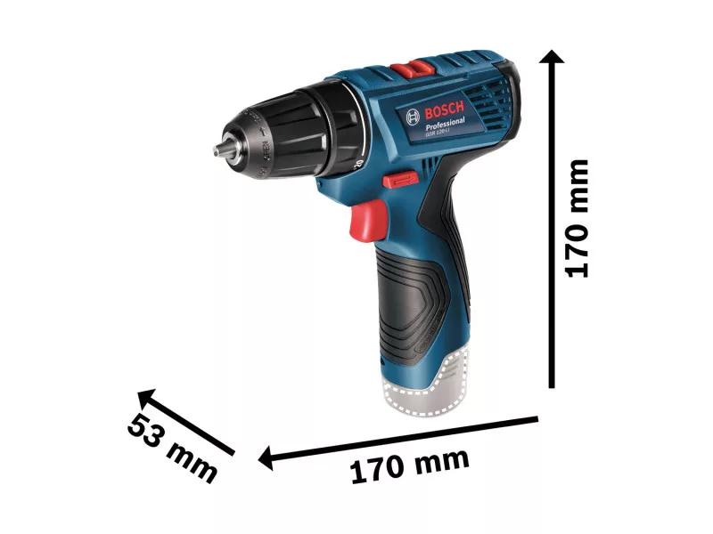 Der leistungsstarke GSR 120-LI Professional Akku-Bohrschrauber ermöglicht dauerhaftes Schrauben und Bohren in Holz, Stahl und Kunststoff.