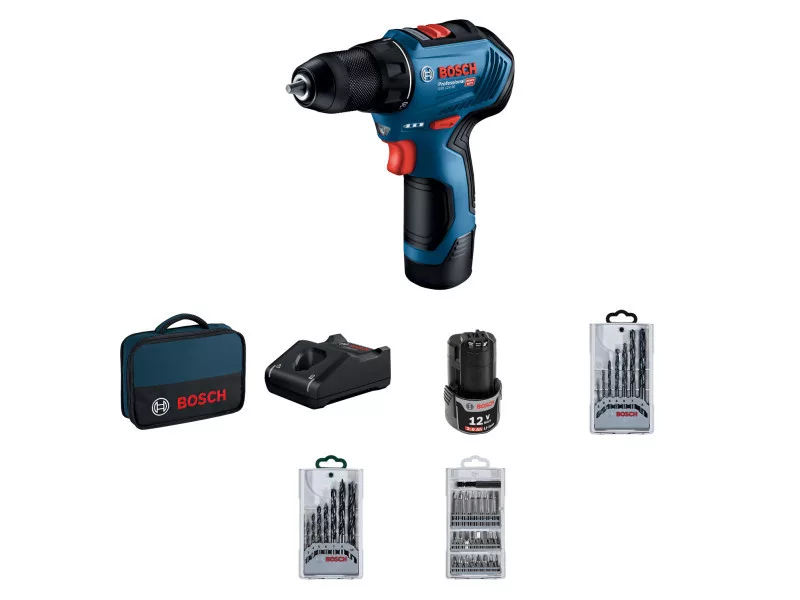 Lieferumfang: 25-teiliges Bitset, 7-teiliges Holzbohrer-Set (3/4/5/6/7/8/10 mm), 7-teiliges Metallbohrer-Set (2/3/4/5/6/7/8 mm), Werkzeugtasche