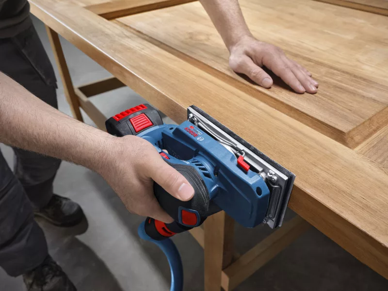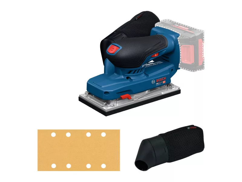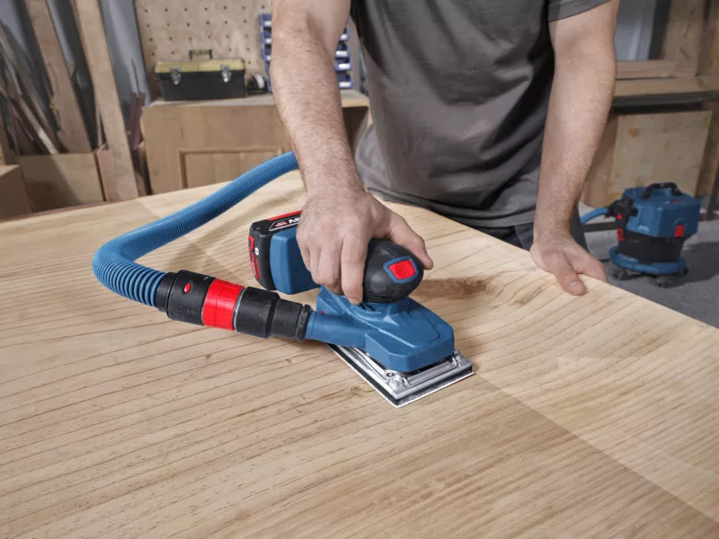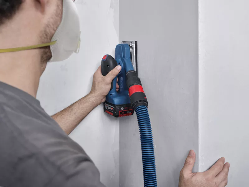 Das GSS 18V-18 eignet sich zum Schleifen von Holz- und Metallflächen und -kanten, Gipskarton und Putz sowie zum Schleifen von Oberflächen vor dem Streichen und zum Entfernen alter Farbschichten. Es ist kompatibel mit dem Bosch Click&Clean System.