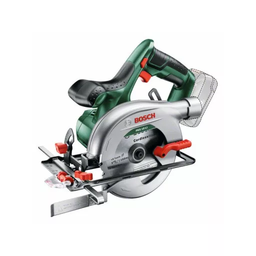 Die PKS 18 LI Kreissäge bietet kabellose Mobilität für vielseitiges Schneiden. Mit ihrem Parallelanschlag kann die gerade Schnittlinie verfolgt werden. Schnelle und einfache Einstellung verschiedener Schnitttiefen und Winkel. Diese Akku-Säge kann auf jeder Baustelle eingesetzt werden, auch ohne Stromquelle. Entwickelt für Geradschnitte in Holz und Holzwerkstoffen. CutControl zur Definition der Richtung entlang der gezeichneten Linie für präzises Schneiden. Dank des Staubsaugeranschlusses wird die Verschmutzung beim Sägen minimiert, da das System die Partikel direkt am Anschluss aufsaugt. Die Sägeblattfixierung ermöglicht einen einfachen Sägeblattwechsel. Dieses Werkzeug ist Teil des POWER FOR ALL ALLIANCE Systems. Ein einziger Akku kann eine Vielzahl von Werkzeugen verschiedener Marken betreiben.