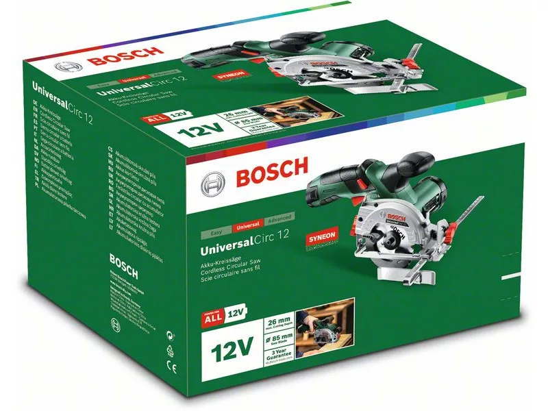 Die UniversalCirc 12 bietet kabellose Mobilität und einfache Geradschnitte. Mit seinem Parallelanschlag folgt es der geraden Schnittlinie. Schnelle und einfache Einstellung verschiedener Schnitttiefen und Winkel. Die PowerLight beleuchtet den Schnittbereich für bessere Sichtbarkeit, auch an dunklen Stellen. Diese Akku-Säge kann auf jeder Baustelle eingesetzt werden, auch ohne Stromquelle. Für gerade und Gehrungsschnitte in Holz und holzbasierten Materialien, für eine breite Palette von Produkten. Die Sägenwellenklemmung ermöglicht einen einfachen Sägeblattwechsel. Das Werkzeug ist Teil des 12V POWER FOR ALL Systems. Ein einziger Akku für alle 12V POWER FOR ALL Werkzeuge.