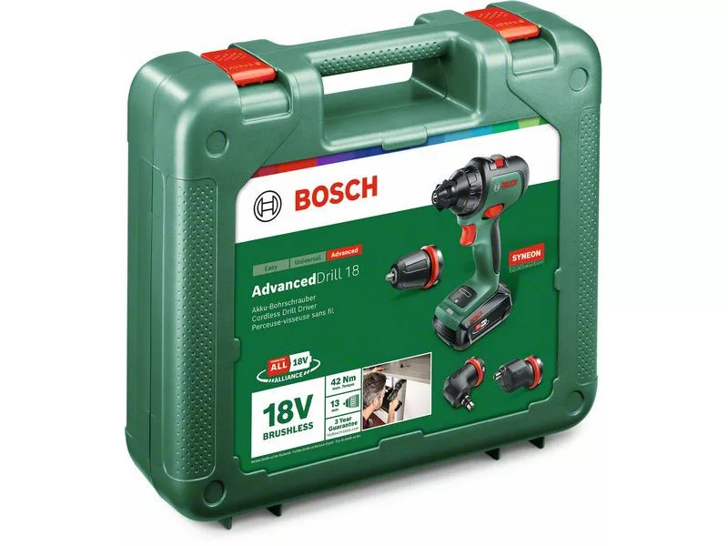 Äußerst benutzerfreundlicher und außergewöhnlich flexibler Akku-Bohrschrauber. Der gewünschte Anwendungsmodus kann einfach ausgewählt werden, die Drehrichtung kann mit einem Klick dank des innovativen elektronischen Schaltersystems mit LED-Anzeige geändert werden. Der bürstenlose Motor bietet eine starke, kompakte und langlebige Lösung. Verfügt über QuickSnap Exzenter- und Eckzubehör für Arbeiten an schwer zugänglichen Stellen, während der magnetische Stecker und das 13 mm Bohrfutter den einfachen Wechsel zwischen Bohren und Schrauben ermöglichen. Mit dem AdvancedDrill 18 können vielfältige Aufgaben in Holz, Kunststoff und Metall durchgeführt werden. Dieses Werkzeug ist Teil des POWER FOR ALL ALLIANCE Systems. Ein einziger Akku kann eine Vielzahl von Werkzeugen verschiedener Marken betreiben.