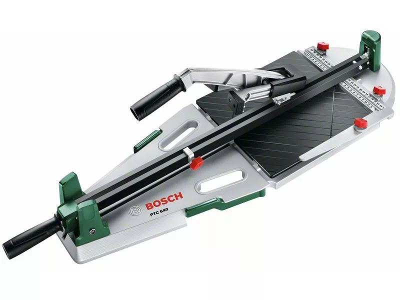 Das Schneiden großer Fliesen einfacher gemacht - der PTC 640 Fliesenschneider ist ideal für Arbeiten mit breiten Fliesen und präzisen Serienschnitten. Mit der Stützvorrichtung können große Fliesen mit einer Breite von bis zu 640 mm geschnitten werden. Serienschnitte mit außergewöhnlicher Präzision dank der Stoppfunktion des Werkzeugs. Mit der Titan-Schneidscheibe können Sie präzise ritzen, und dann können die Fliesen genau mit dem Fliesenschneider gebrochen werden - ohne die Fliesen aus dem Werkzeug entfernen zu müssen. Für Diagonalschnitte steht der 45°-Winkelführer des Geräts zur Verfügung, und für präzise Parallelschnitte kann der eingebaute Parallelführer verwendet werden.