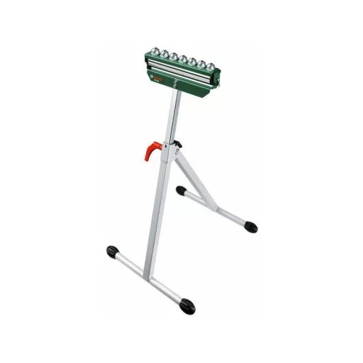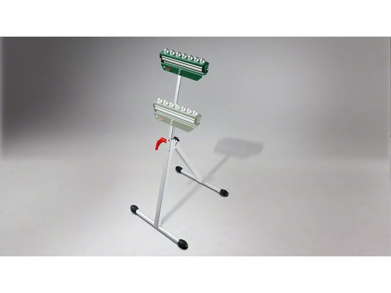 Der PTA 1000 Arbeitstisch ermöglicht flexibles Arbeiten, insbesondere bei großen Werkstücken. Dank der Rollenstütze lässt sich das Werkstück beim Längssägen einfach in Richtung des Werkzeugs und in die entgegengesetzte Richtung schieben, während die Kugelstütze das Drehen in den idealen Schnittwinkel erleichtert. Die Höhe des Arbeitstisches kann zwischen 700 mm und 1150 mm für noch vielseitigere Arbeiten eingestellt werden. Der leicht zusammenklappbare Arbeitstisch kann platzsparend gelagert und leicht transportiert werden.
