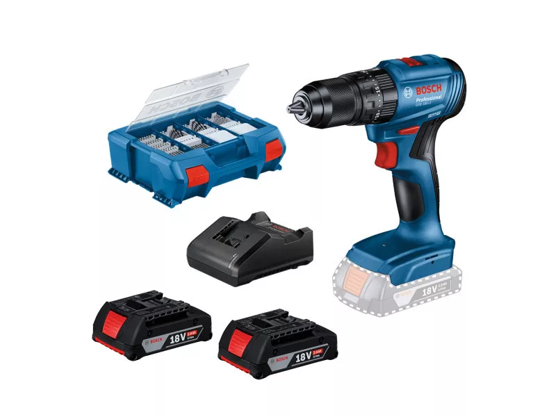 GSR 185-LI Akku-Schlagbohrschrauber mit 82-teiligem Zubehörset und 2 x 2,0 Ah Akku in Werkzeugtasche, zu einem reduzierten Preis.