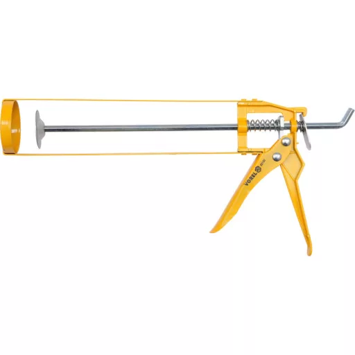 Light butter squeezer made of sheet metal, matching typical 300 ml tubes with a length of 230 mm with silicone or glue. For squeezing dense masses / glue / silicones / sealants, used for renovation and finishing works