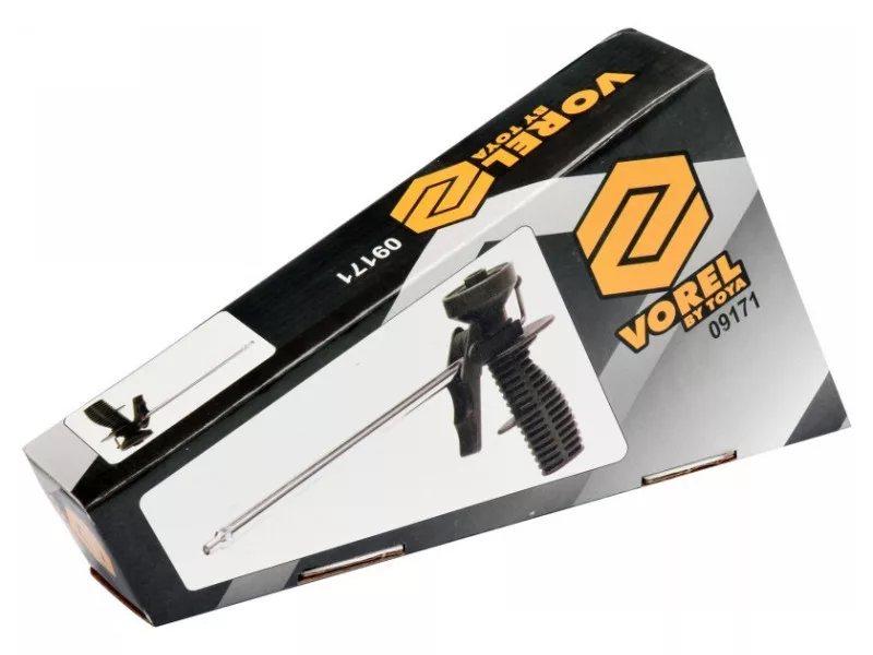 Pistol designed for the application of polyurethane foam in construction, installation, insulation work.