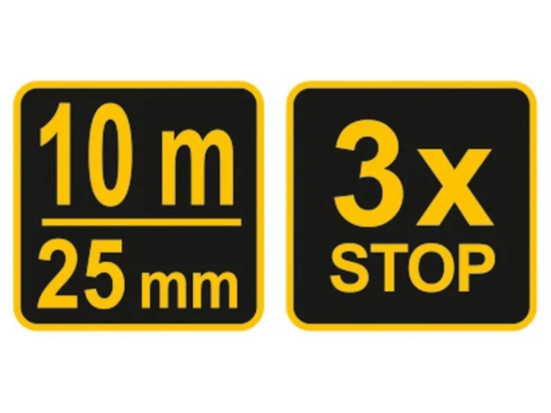 • Steel tape measure with a length of 10 meters and a width of 25 mm, ensuring durability