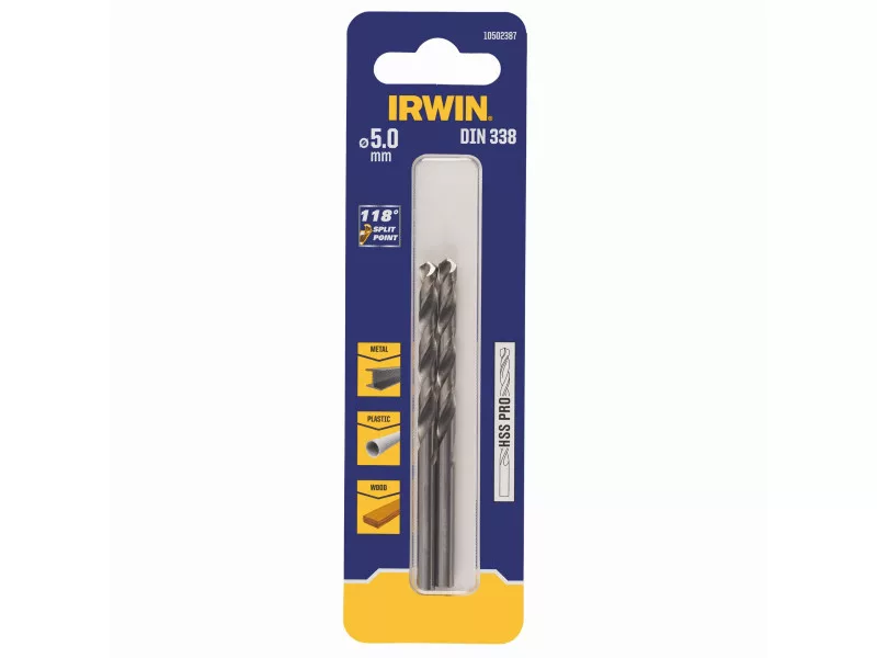 IRWIN Schraubenbohrer 5 x 86/62 mm HSS PRO zylindrisch (2 Stück)