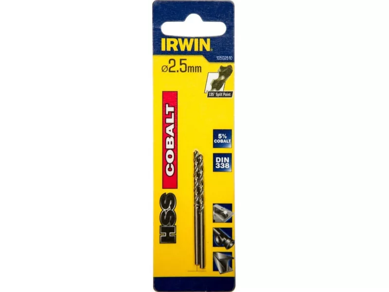 Der Irwin HSS Kobalt-Bohrer ist perfekt zum Bohren von rostfreiem Stahl und anderen hochlegierten Metallen. Die Schleifung mit einem Teilungspunkt von 135° gewährleistet eine perfekte Zentrierung und reduzierten Bohrdruck. Industriequalität geschliffener Nut für Präzisionsbohrungen und schnelle Späneentfernung.