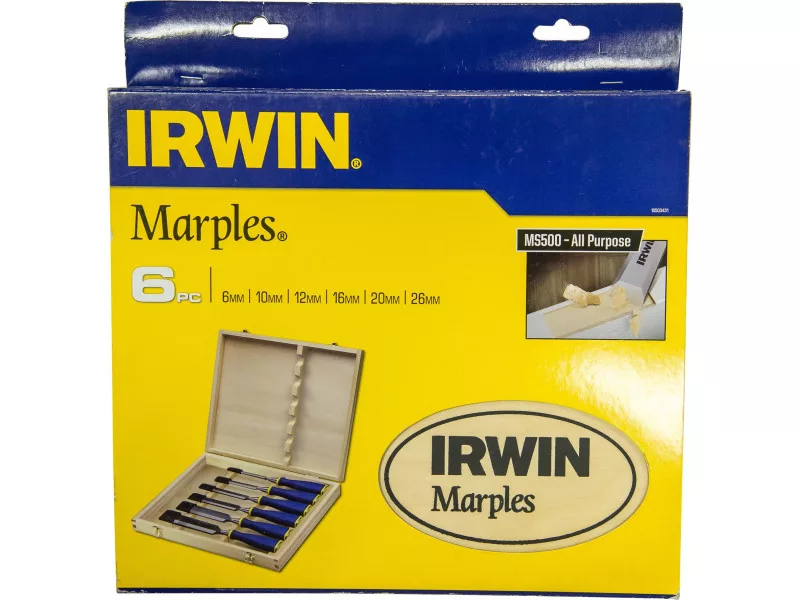 IRWIN Marples Stechbeitel Set, 6-teilig, mit weichem Griff (6-10-12-16-20-26 mm)