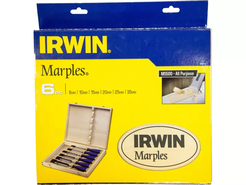 IRWIN Marples Stechbeitel Set mit 6 Teilen und weichem Griff (6-10-15-20-25-35 mm)