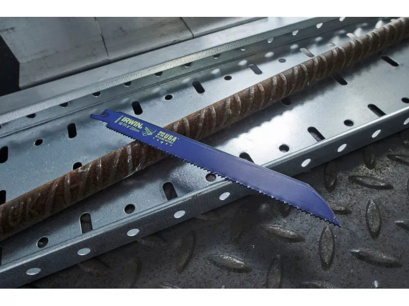 Das bimetallische Sägeblatt ist widerstandsfähiger und kann ohne zu brechen gebeugt werden, was einen schnelleren Schnitt ermöglicht.