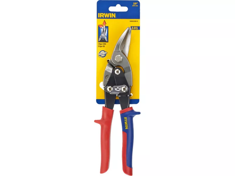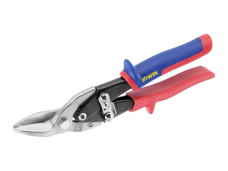 Die IRWIN® Flugzeug- und Offset-Blechschere mit präzisionsgefertigten Klingen ermöglicht ein längeres Schneiden; der ergonomisch geformte, spritzgegossene weiche Griff sorgt für eine komfortable und effektive Arbeit, während die robuste Feder einen gleichmäßigen und glatten Schnitt gewährleistet.