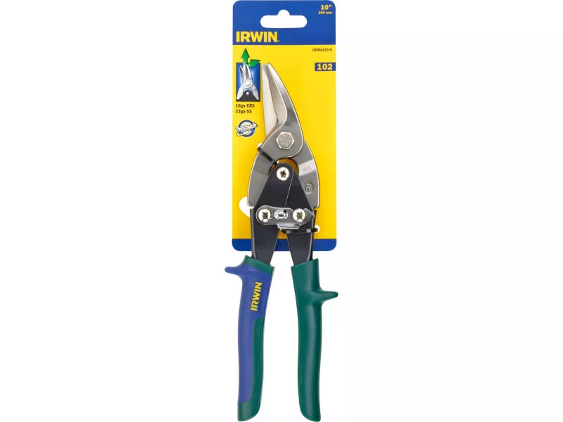 Die IRWIN® Luftfahrt- und Offset-Blechschere mit präzisionsgefertigten Klingen ermöglicht längeres Schneiden; der ergonomisch geformte, spritzgegossene weiche Griff ermöglicht komfortables und effizientes Arbeiten, während die robuste Feder einen glatten und gleichmäßigen Schnitt gewährleistet.