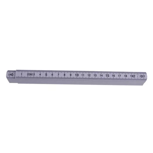 Kunststoff-Klappmeter, weiß, mit beidseitiger Skala in mm - gut lesbarer schwarzer Druck, Verriegelungen mit der Möglichkeit, das Bauteil in einem 90° Winkel zu fixieren.