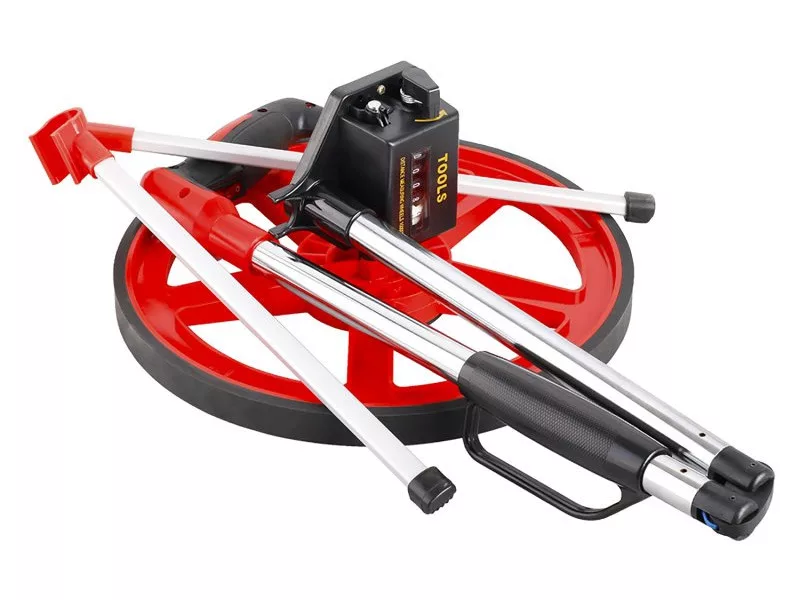 Mérőkerék a könnyű méréshez - a felület külső és belső méretei, vonalak stb., összecsukható szerkezet, védőtok a biztonságos kezeléshez szállításkor, mérési tartomány 10 cm-től 9999,9 m-ig.