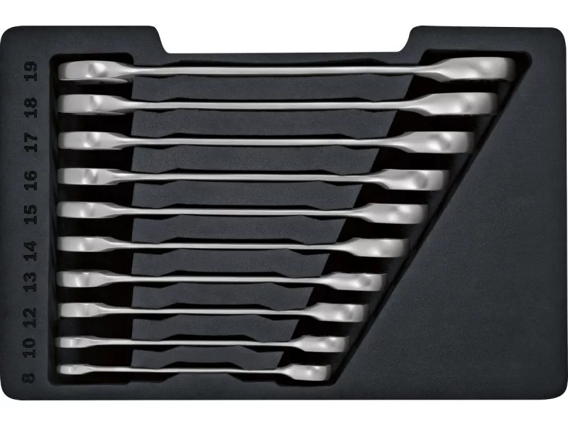 Das Set enthält: 8, 10, 12, 13, 14, 15, 16, 17, 18 und 19 mm.