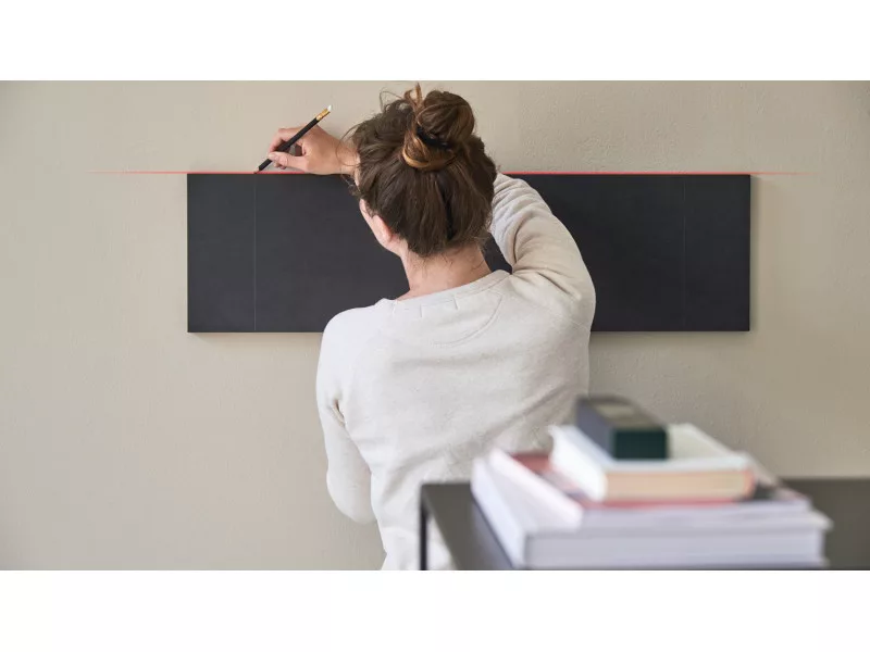Der Nivellieradapter projiziert einen Laserstrahl für schnelles und einfaches horizontales und vertikales Nivellieren von Objekten, wie zum Beispiel das gerade Aufhängen von Regalen, Haken oder Bildern.