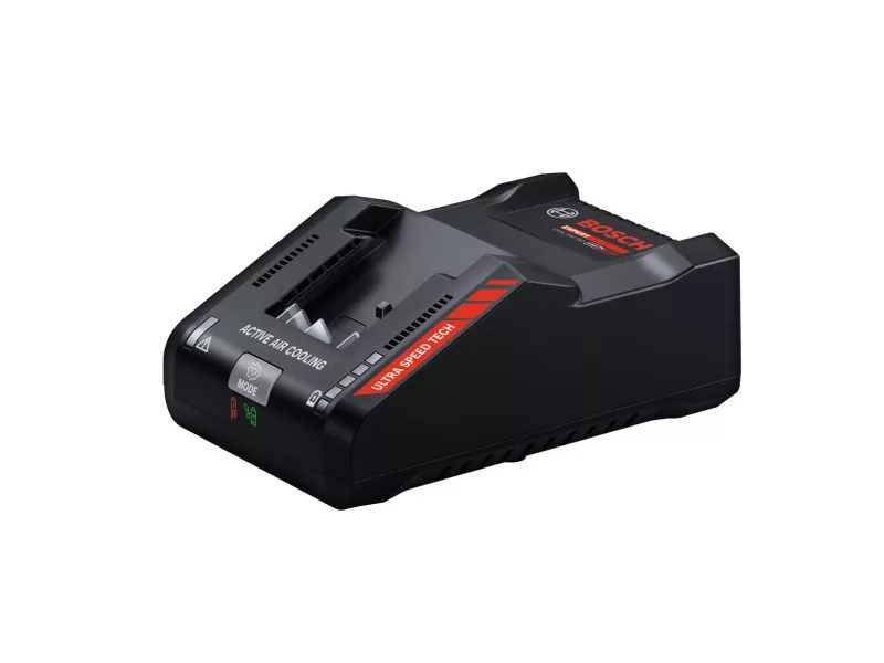 Hochgeschwindigkeitsladegerät für intensive Anwendungen. 5 LEDs zeigen den genauen Ladezustand des Akkus an. Kompatibel mit dem Bosch Professional 18V System und dem AMPShare Multi-Brand Akkusystem.