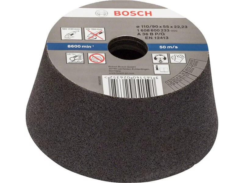 BOSCH Konische Schleifscheibe für großen Winkelschleifer 110/90 x 55 x 22,2 mm / P36