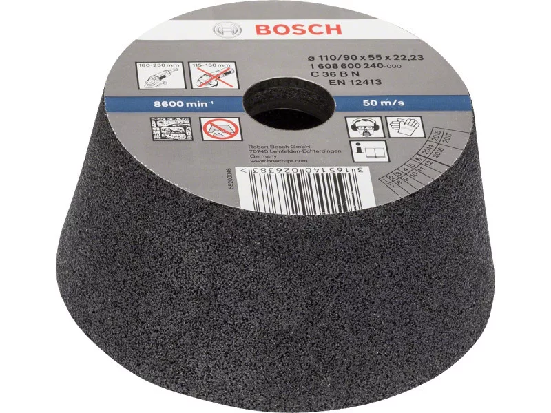 BOSCH Konische Schleifscheibe für großen Winkelschleifer 110/90 x 55 x 22,2 mm / P30