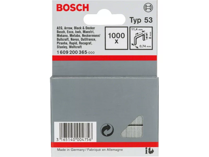 BOSCH Heftgerät 8 x 11,4 x 0,74 mm für HT14 Heftgerät (1000 Stück)