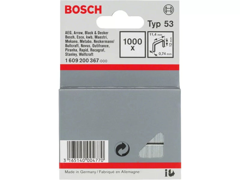 BOSCH Heftgerät 12 x 11,4 x 0,74 mm für HT14 Heftgerät (1000 Stück)
