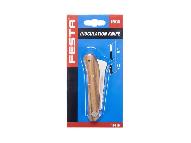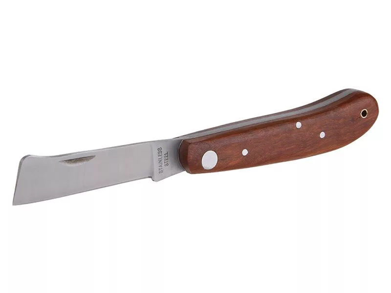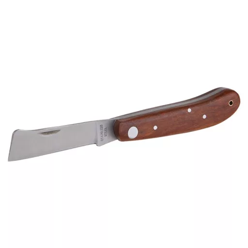 Oltó összecsukható kés, erős rozsdamentes penge, fa nyél kiváló minőségű szegecseléssel, oltáshoz - fák és növények vágásához és kezeléséhez, penge hossza 110 mm, bliszter.