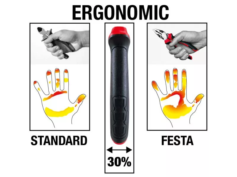• ergonómikus, kétkomponensű, lágyított fogantyúk, 30%-kal nagyobb érintkezés a fogantyúval megfogáskor és nyomáskor – csökkenti a szükséges erőt