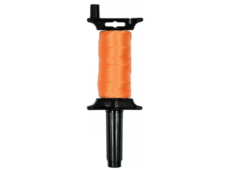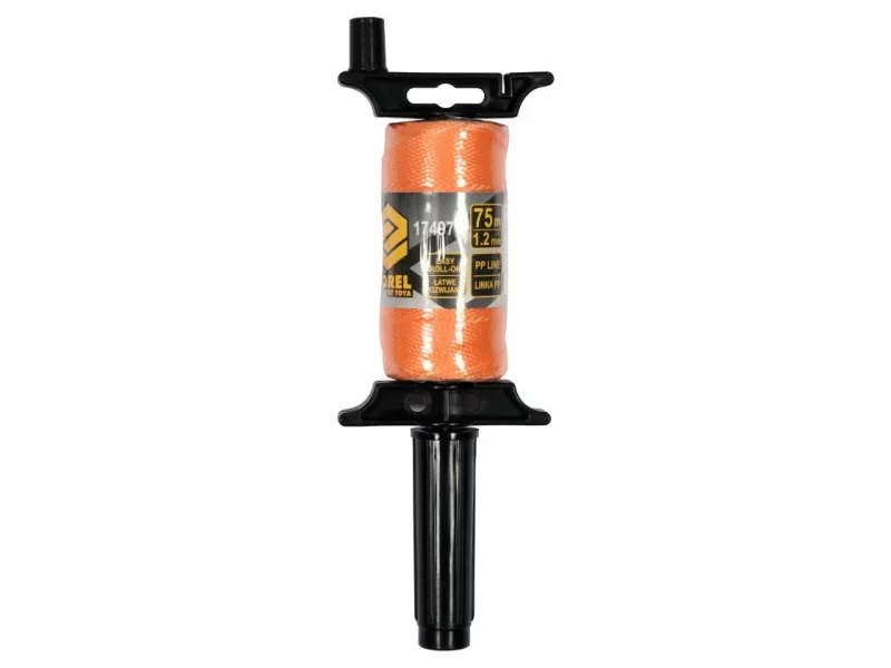 Masonry cable, twisted, made of polypropylene. Length 75 m, cable thickness 1.2 mm, orange color. The cable wound to a spool with a handle. Used to determine straight lines during masonry, plastering, painting or during other construction works.
