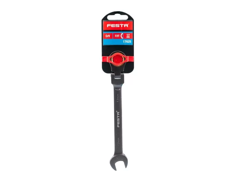 A FESTA racsnis villáskulcsok szögben használható csuklóval a racsnis (racsnis) előnyével minőségi króm-vanádium acél vasalatokból készülnek. Ez az acél felülete matt kemény krómmal van kezelve az optimális felületi keménység és a korrozív hatásokkal szembeni ellenállás elérése érdekében. A villáskulcs racsnija 72 edzett fogból áll, 5 ívfokban kapcsolva. Minőség, keménység és pontosság tekintetében pontosan megfelelnek a DIN/ISO szabványnak.