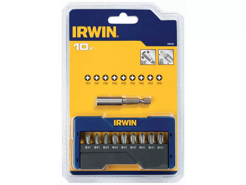 Die IRWIN® Taschenboxen sind kompakt und tragbar gestaltet, um das Mitführen der für die Arbeit benötigten Bits zu erleichtern. Die robusten, spritzgegossenen ABS-Harzboxen können alles aushalten, was die Baustelle auf sie wirft, und verfügen über leicht ablesbare Größenmarkierungen zur einfachen Identifizierung des Inhalts.