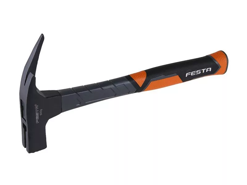 Tetőfedő kalapács 600g ÜVEGSZÁLAS FESTA ütéselnyelő üvegszálas nyéllel. A fogantyú csúszásmentes fogantyúval rendelkezik, a végén hosszabbítóval, amely megakadályozza a csúszást. Az acél kalapácsfejen van egy bevágás erős mágnessel a szög megtartásához, egy szöglehúzóval és egy érdesített kalapács ütőfelülettel.