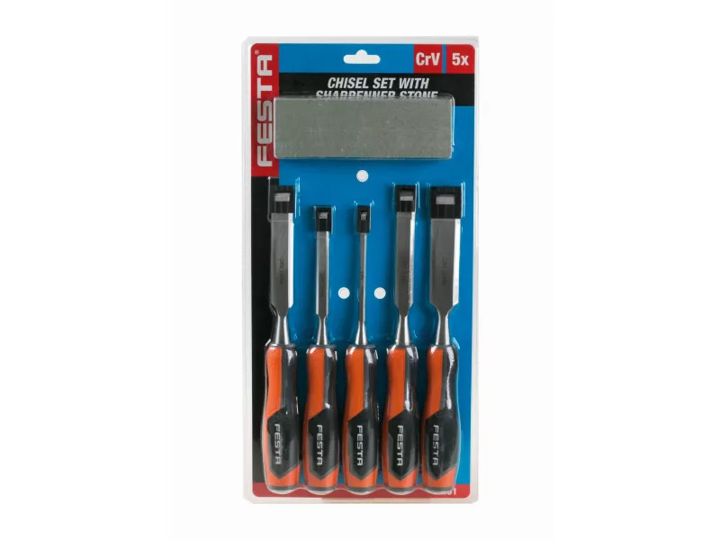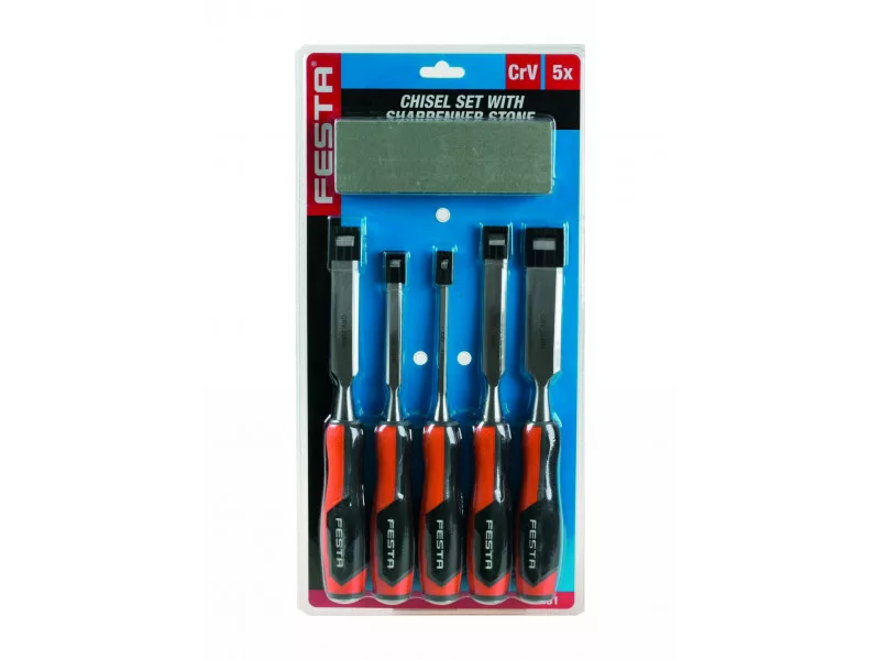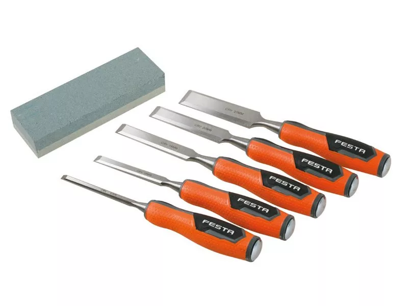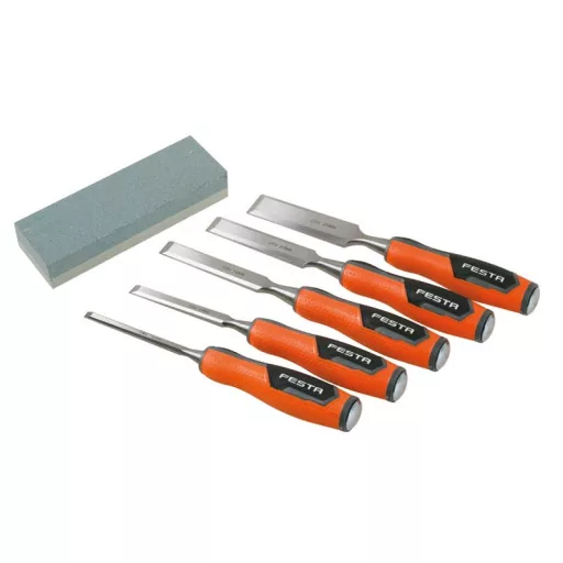 FESTA Holzmeißel-Set mit 5-teiligem Kunststoffgriff und Schleifstein