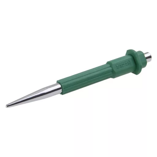 Minőségi acél lyukasztó gumi fogantyúval a kényelmes munkavégzés érdekében. A hegy átmérője 2,5 mm, a cimbalom hossza 125 mm.