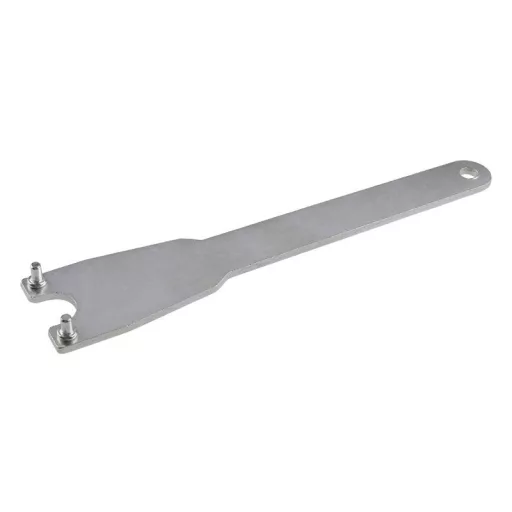 Villáskulcs 115 - 230 mm-es sarokcsiszolóhoz, használat: az anya meghúzására és ezáltal a csiszoló- vagy vágótárcsa rögzítésére a sarokcsiszoló orsójára.