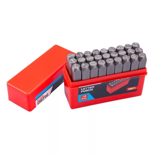 Kézi lyukasztó - ábécé betűi, kiváló minőségű szénacél - szilárdság 800 N/mm2-ig, zavaros csúcsok - nagy keménység, méretek: betűmagasság - 8 mm, karaktertípusok DIN 1451 szerint, csomagolás: műanyag doboz.