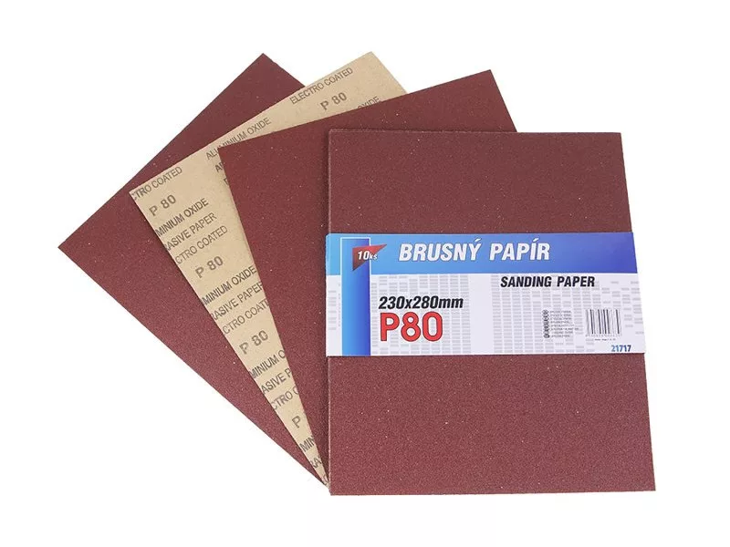 Csiszolópapír - 10 db-os készlet, szemcseméret: 80, szemcsefajta: alumínium-oxid, kötőanyag: műgyanta, hátlap anyaga: rugalmas papír C (110-135g/m2), méretek: a termék megnevezésében feltüntetve, kiszerelés: 10 db - papír hüvely.